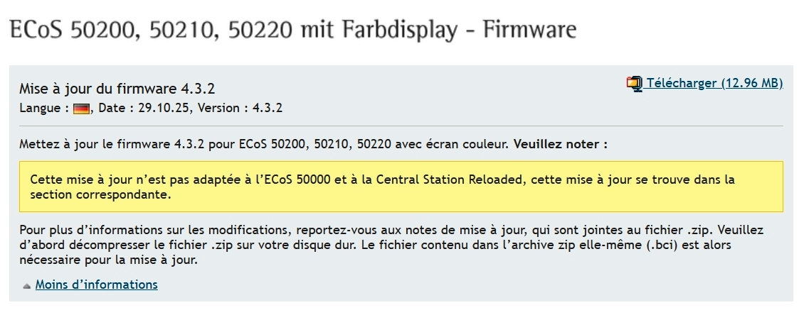 1) Notes de version pour le logiciel 4.3.2 pour ECoS :