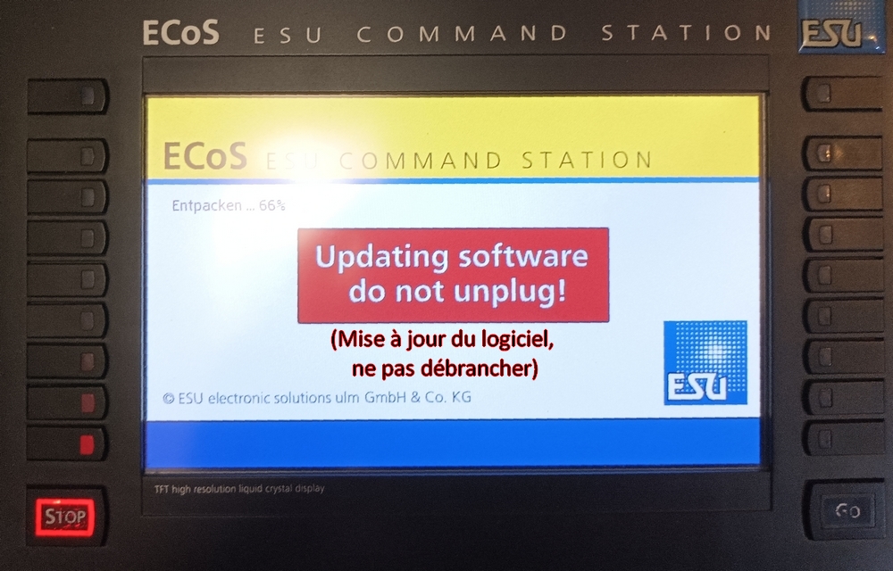 Apres avoir téléchargé le micro logiciel sur le site ESU (ATTENTION il faut être inscrits chez eux) voici les trois actuelles pour les ECoS couleur.