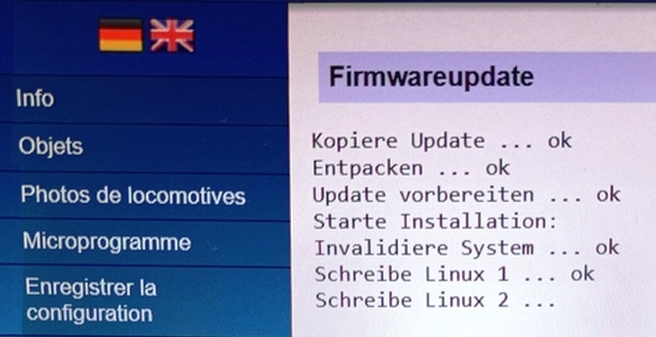 Sur l’écran de votre PC vous verrez en anglais ou allemand s’afficher la progression de l’installation avec ok à chaque fin de ligne.