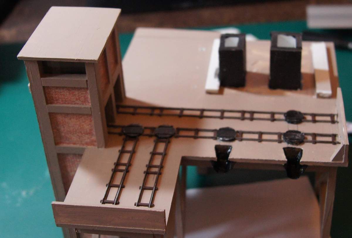 Implantation des rail des wagonnets (avec un reste d’un Kit Auhagen en voie HOe 7mm)