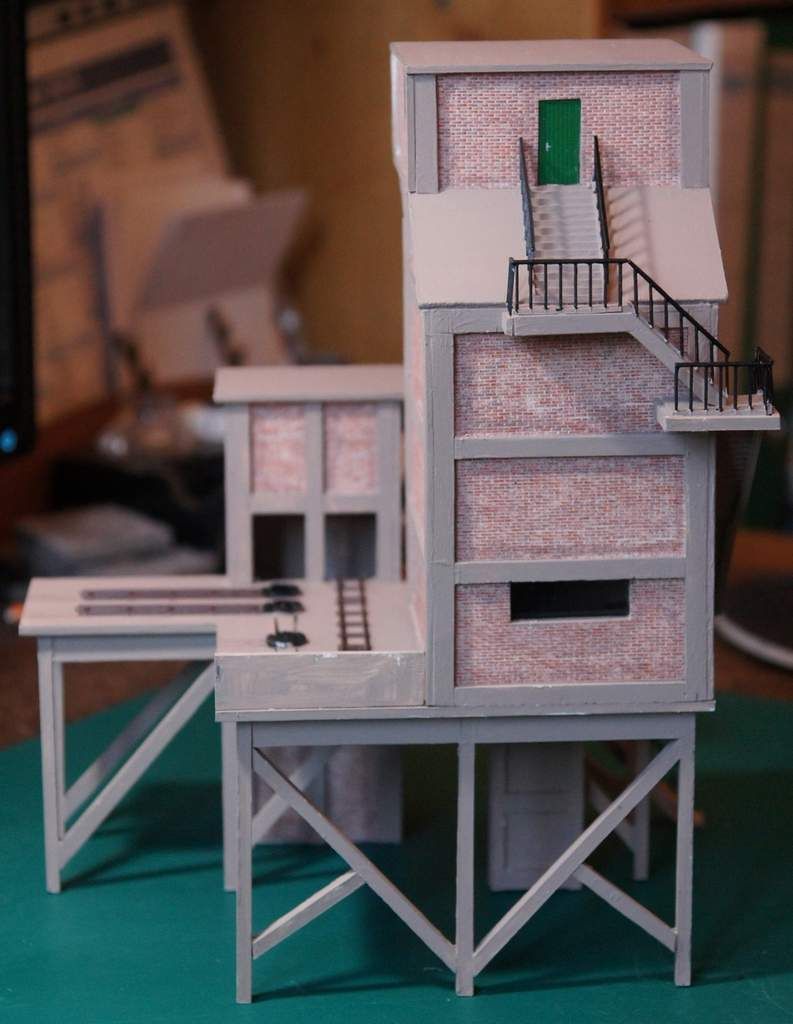 Les escaliers ont été récupérés en les coupant en 2 dans la hauteurs et charcutages divers dans une ancienne passerelle Jouef qui trainait dans la boite à rabios…