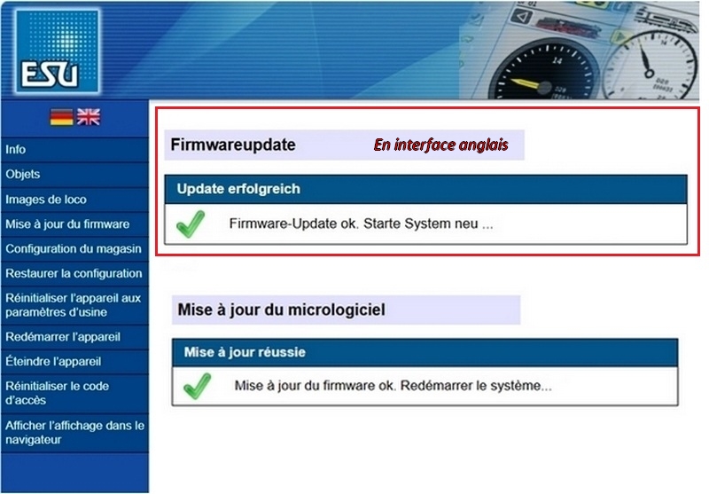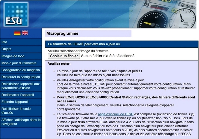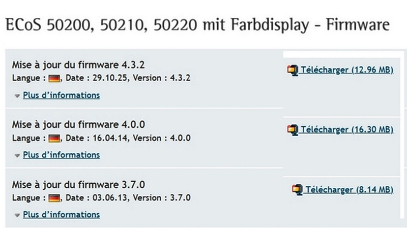Apres avoir téléchargé le micro logiciel sur le site ESU (ATTENTION il faut être inscrits chez eux) voici les trois actuelles pour les ECoS couleur.